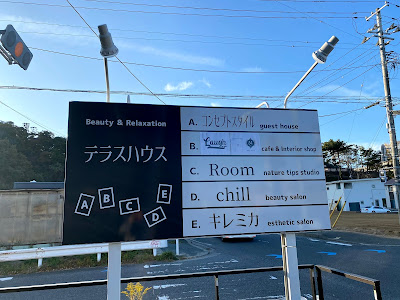 テラスハウスが5棟並んでいます。どこから入るのかわからなくて右側の従業員入り口のドアを開けようとしたら
