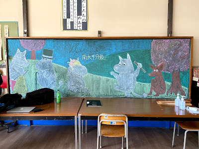 黒板アートは勿来工業の生徒さん達によるものだそうです。